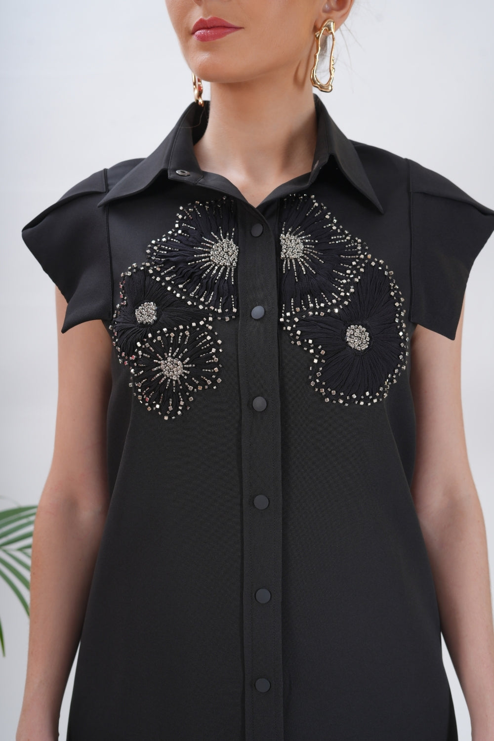 The deep black hue and minimal embellishments make this piece incredibly versatile — perfect for workwear, dinner dates, or styled down for effortless day dressing. Pair it with heels or ankle boots for a polished look that never goes out of style.