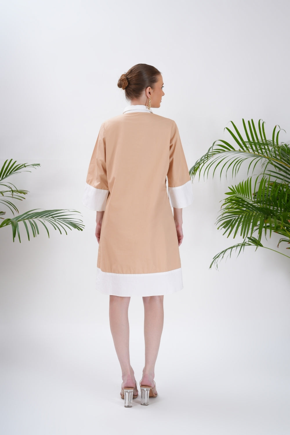 Bring a splash of playful charm to your wardrobe with the Coral Bloom Short Dress. Crafted from breathable, soft cotton, this A-line dress features a shirt-style silhouette with a button-down front and crisp white collar and cuffs for a polished contrast.